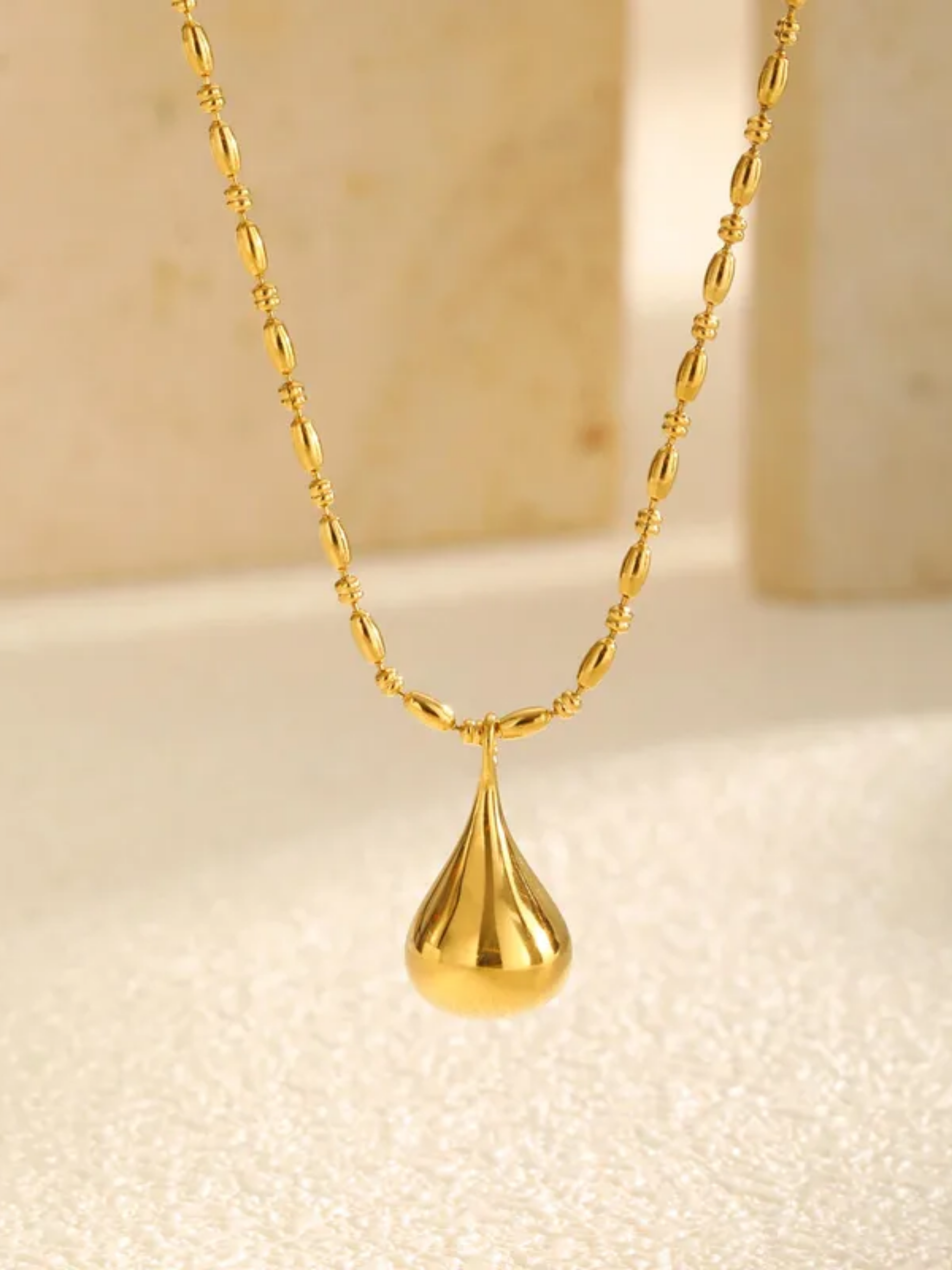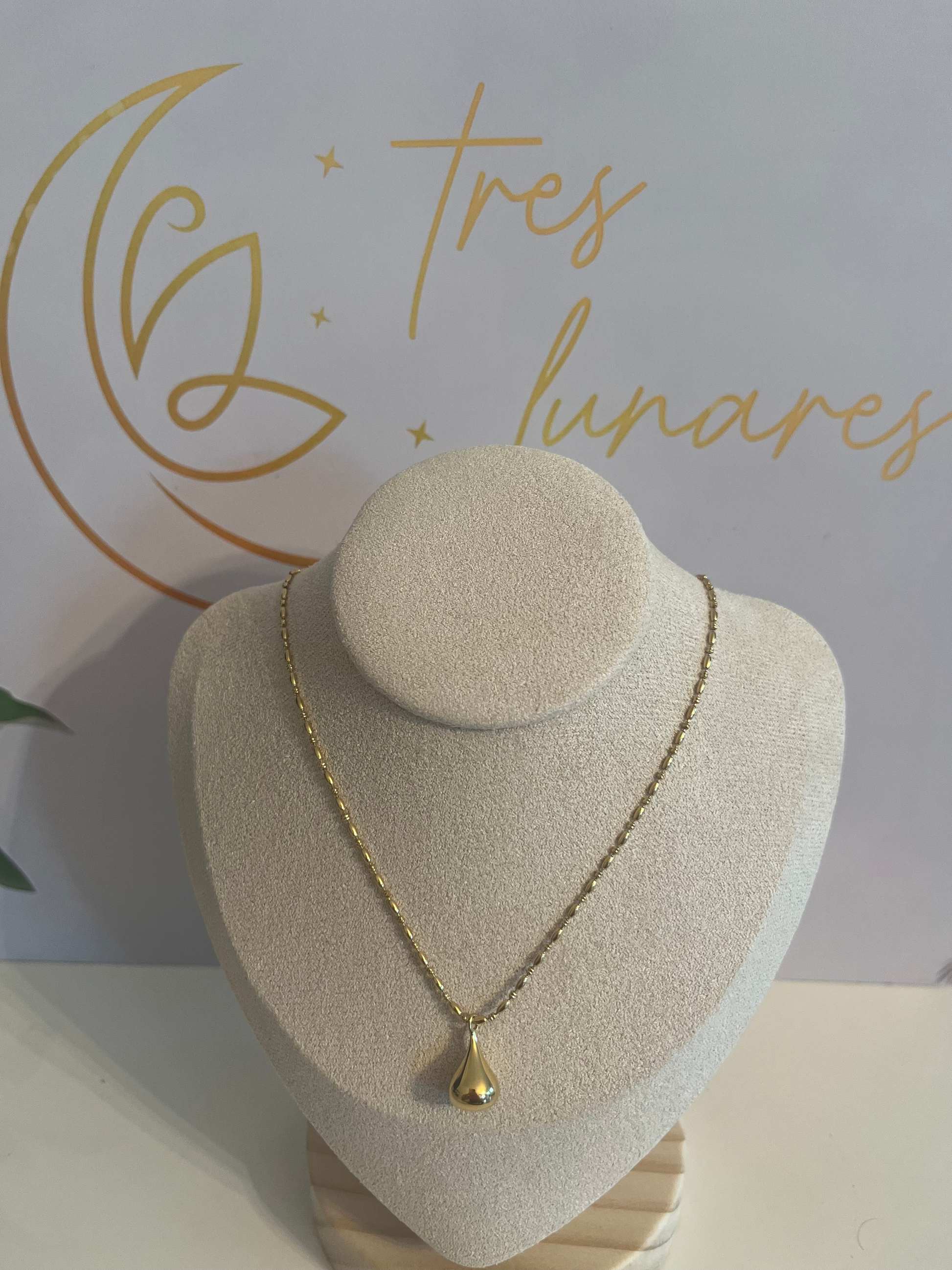 Akiss es un collar sencillo y delicado, elaborado en acero inoxidable con enchapado en oro de 18K. Su charm en forma de gota con base plana aporta un detalle sutil pero elegante, ideal para quienes disfrutan de la belleza minimalista. Perfecto para llevar a diario, combinar con otras piezas o lucir en ocasiones como trabajo, cenas o salidas casual.