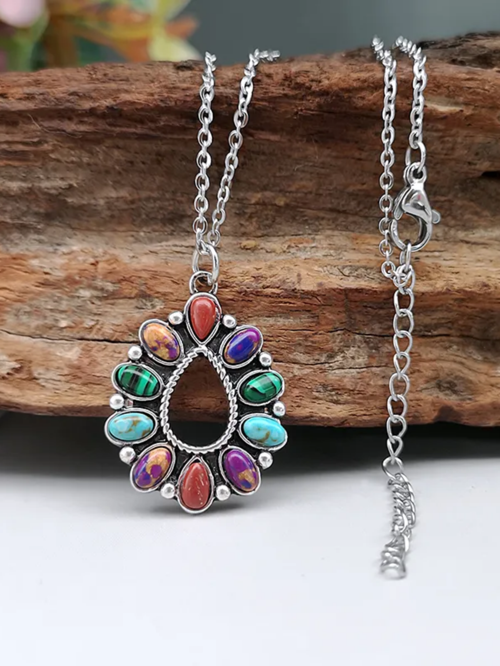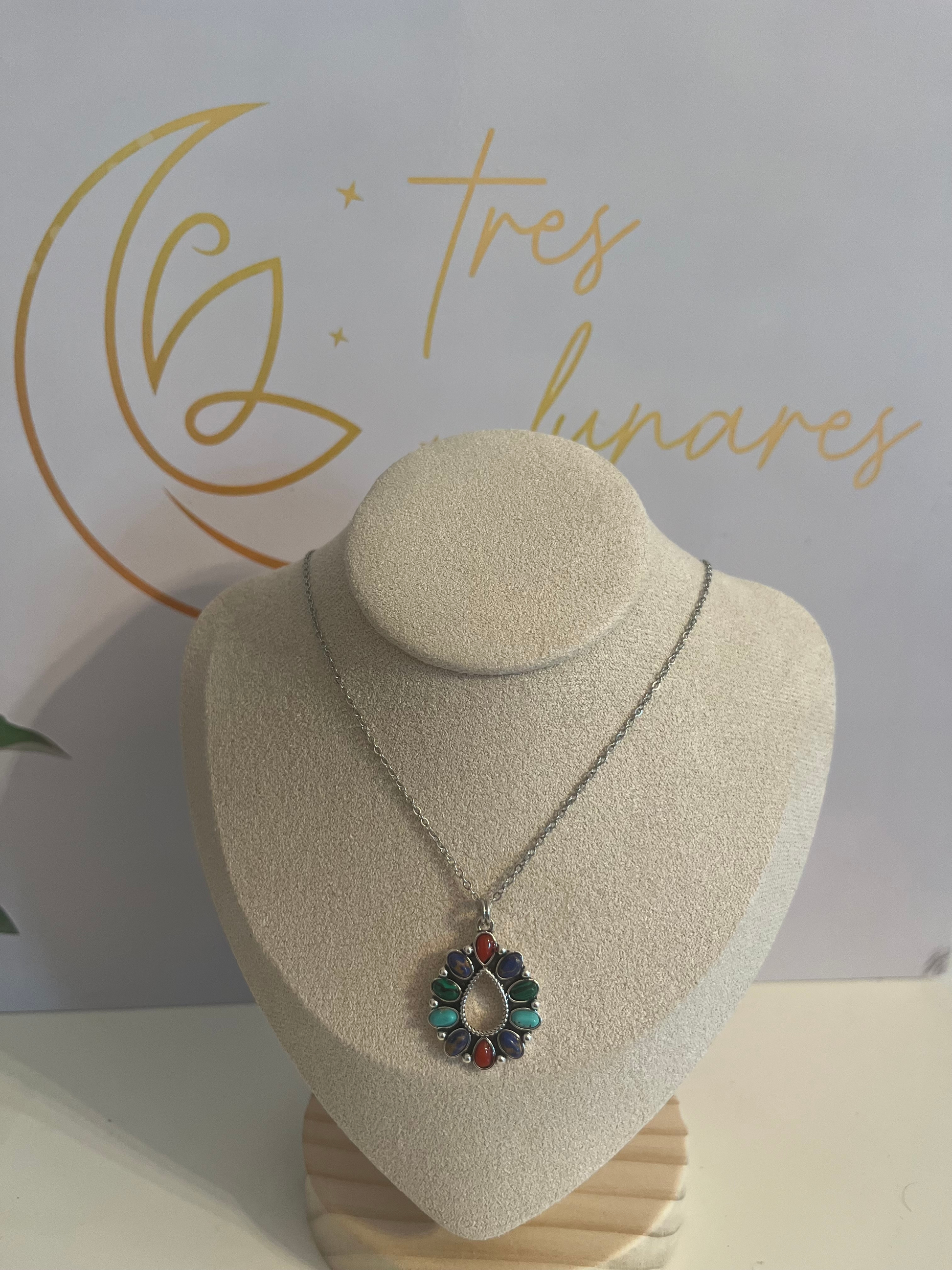 Bohemia es un collar con espíritu libre y auténtico, elaborado en acero inoxidable plateado con un colgante en aleación de zinc decorado con piedras de colores. Su diseño bohemio aporta un aire artístico y vibrante, ideal para quienes buscan piezas diferentes que destaquen en su estilo. Perfecto para el día a día, combinaciones creativas, el trabajo o incluso una cena, este collar añade un toque único y lleno de personalidad a cualquier look.