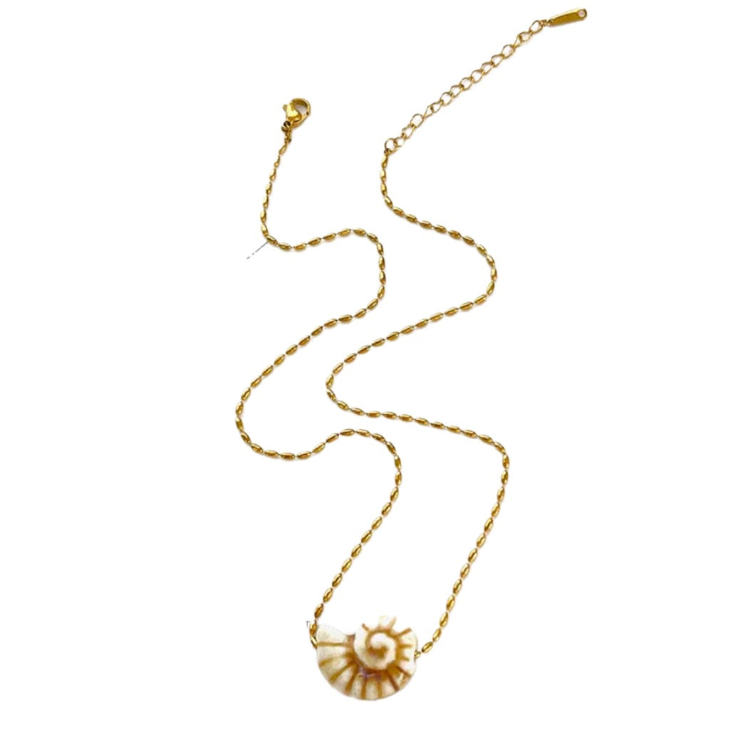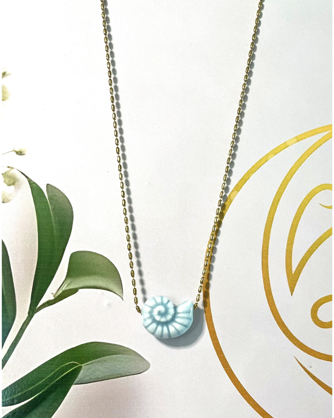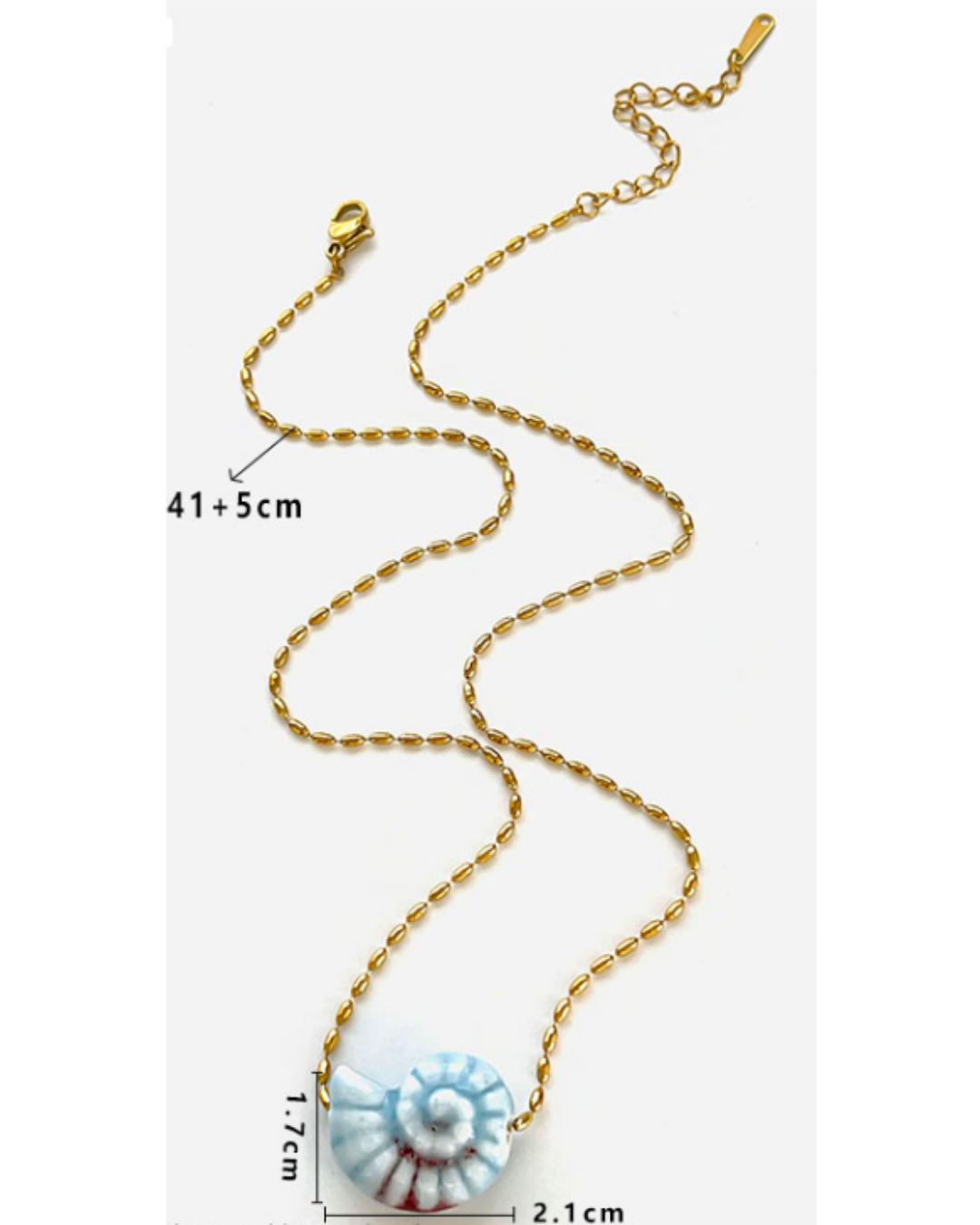Collar en acero inoxidable chapado en oro de 18K, con detalle azul o crema central. Ideal para fiestas, viajes o elevar tu look diario con un toque fresco y elegante.