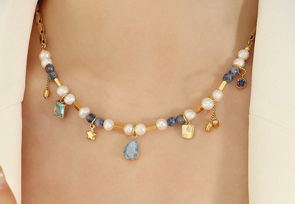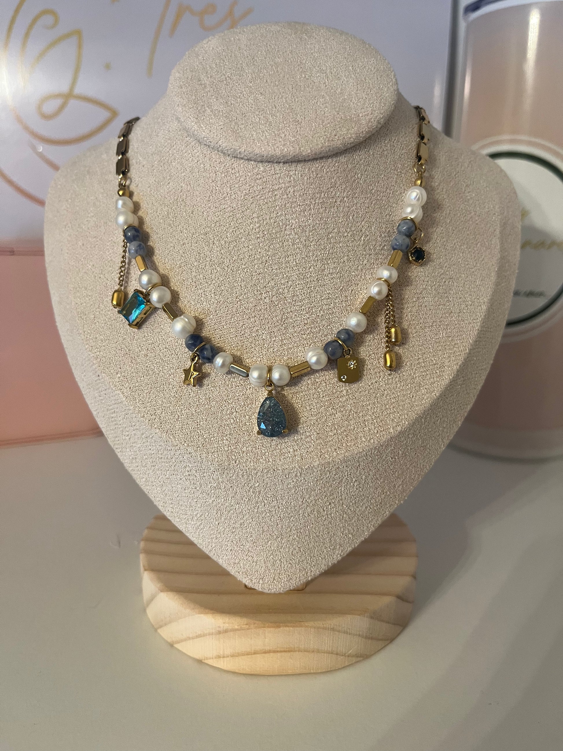 Pieza única que amarás, confeccionada en material stainless steel, perlas de agua dulce y chapado en oro de 18k. Esta pieza no pasará desapercibida!