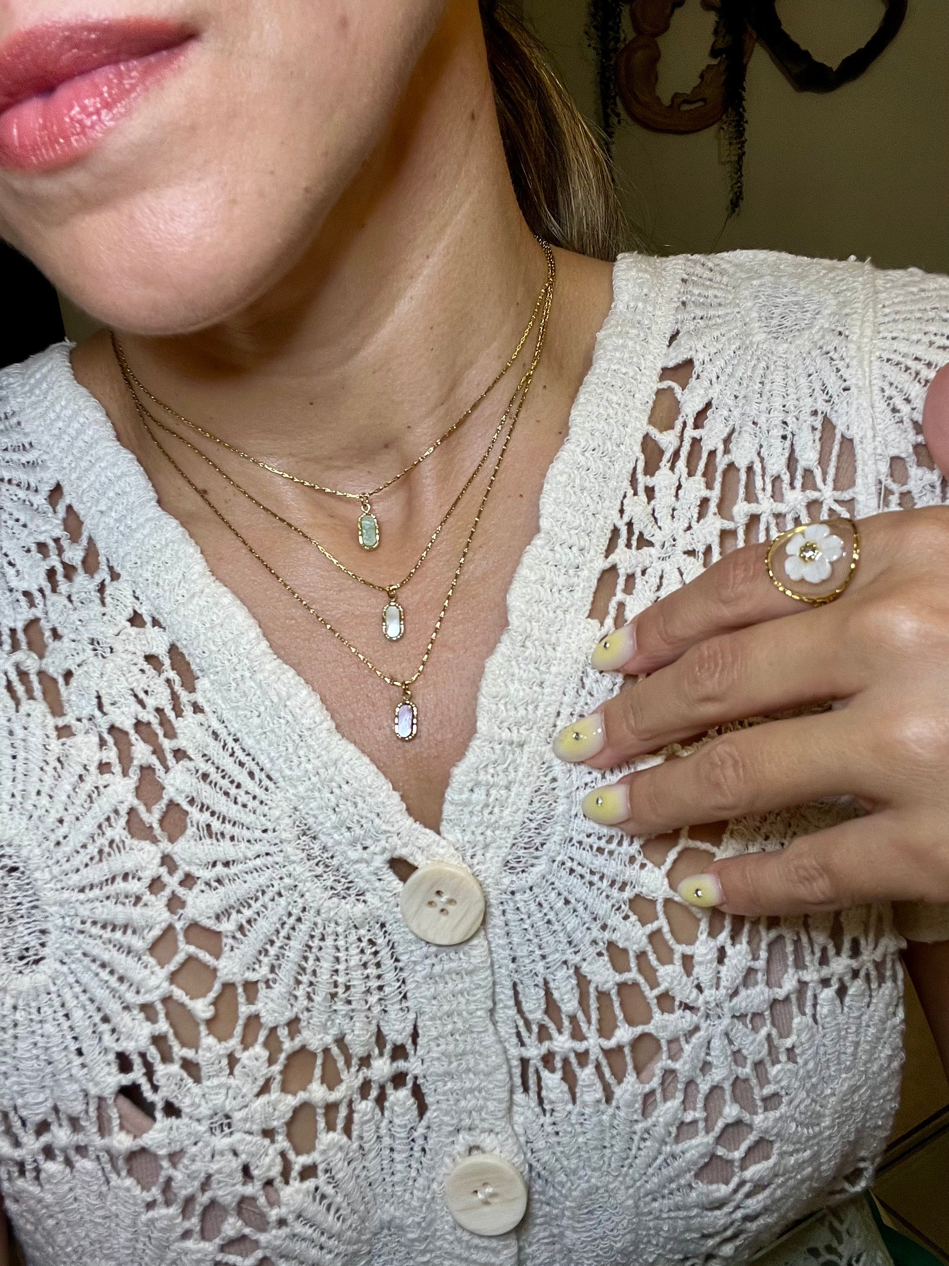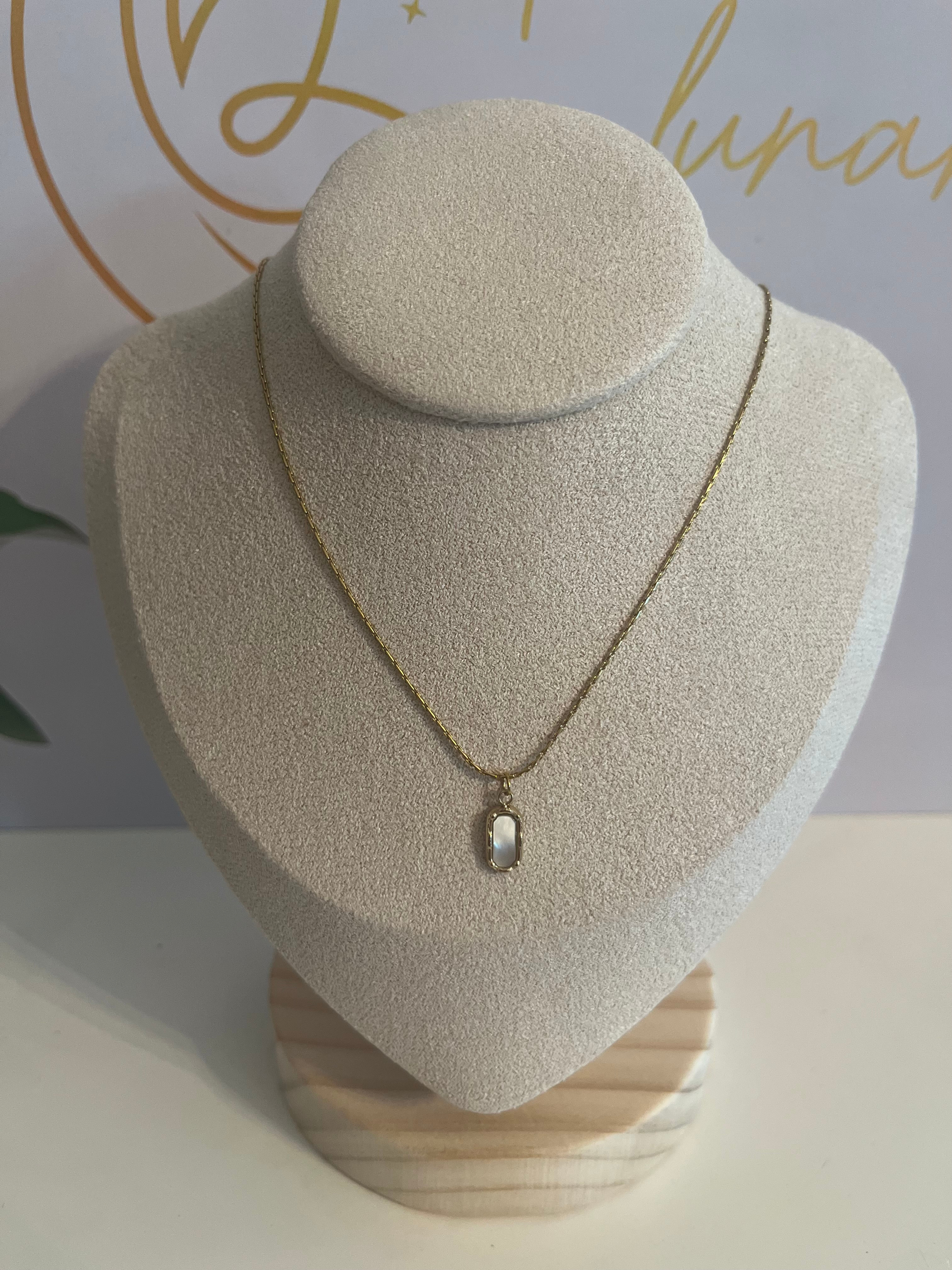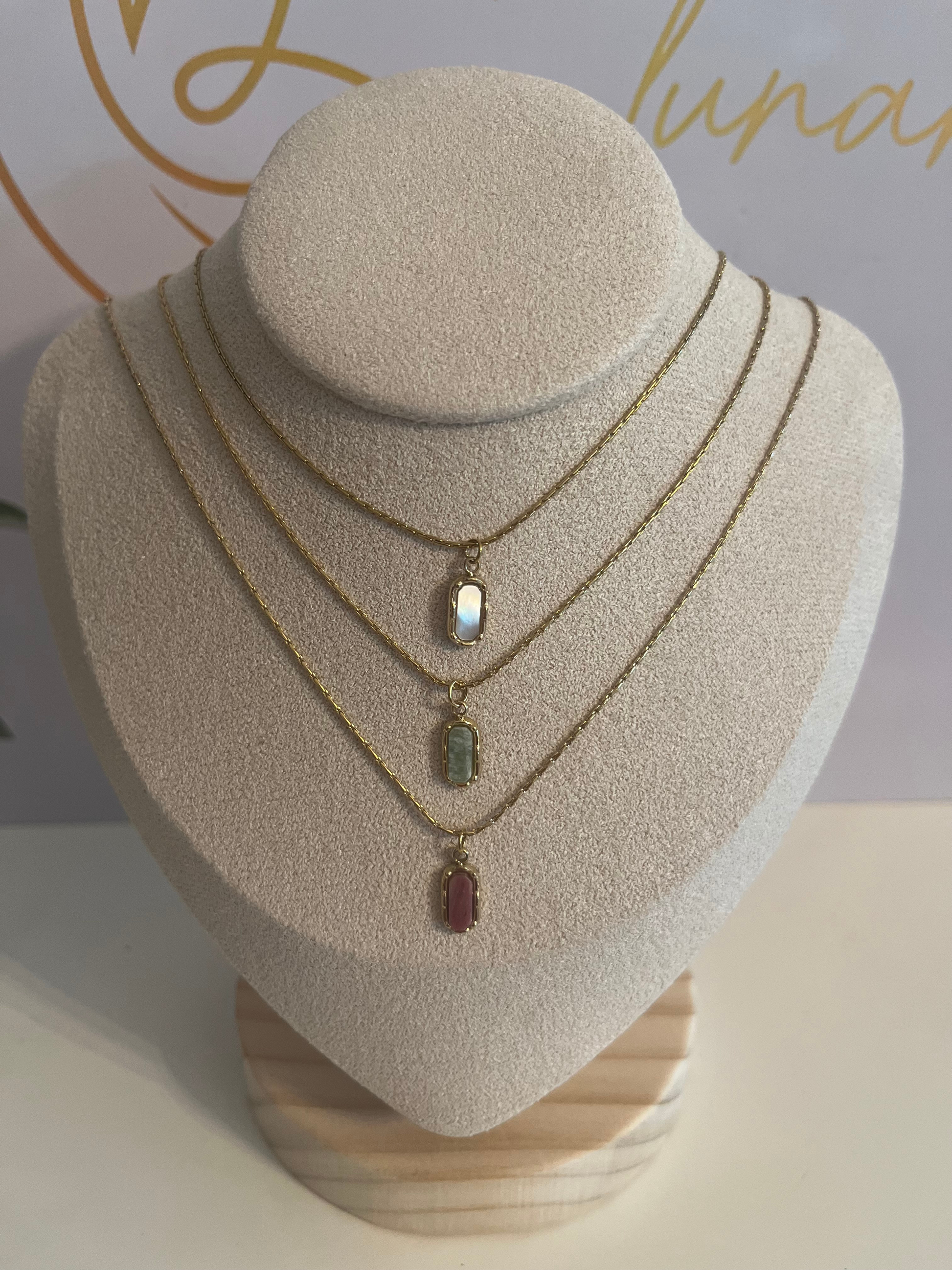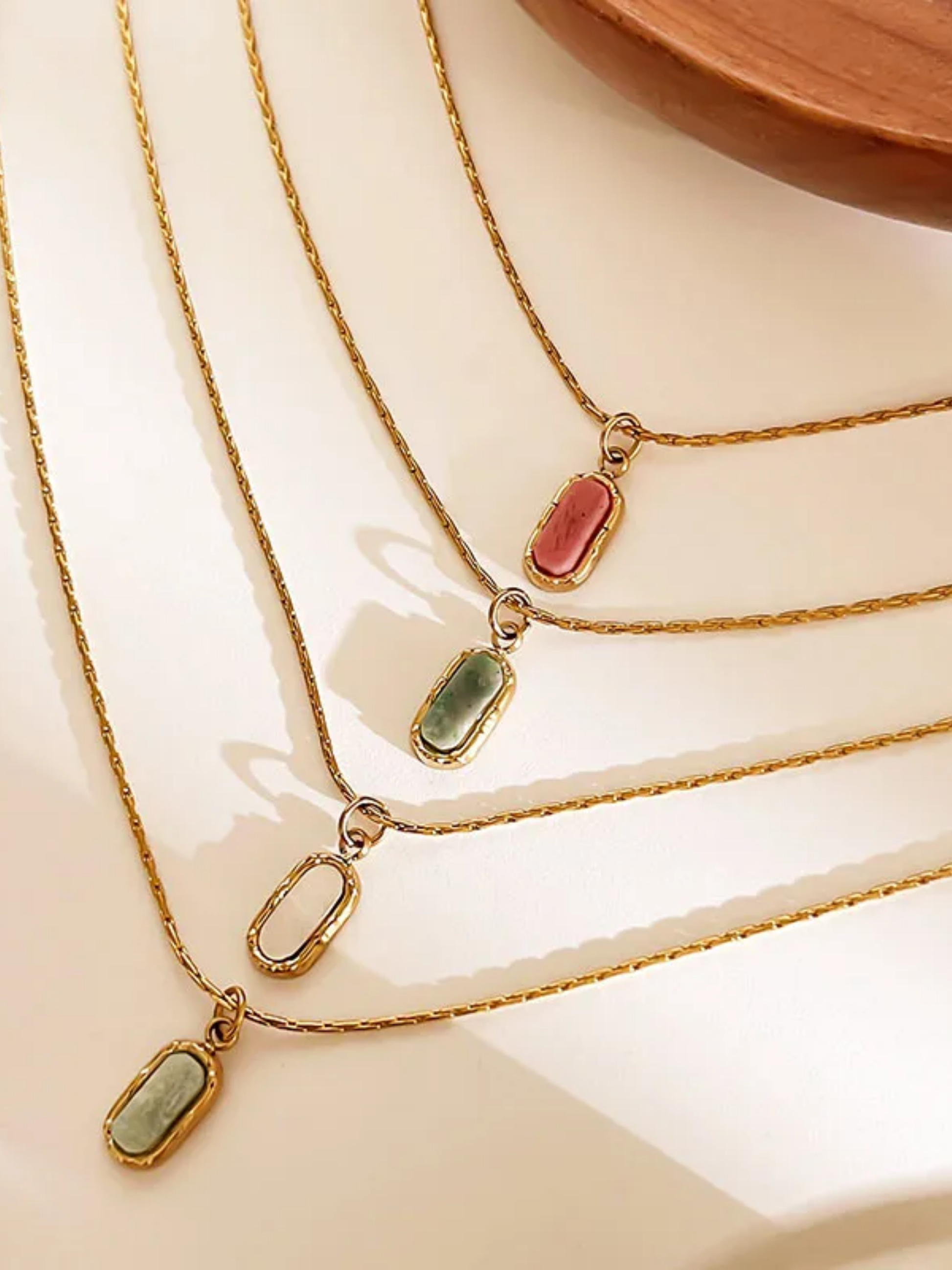 Collar en acero inoxidable con baño de oro 18K y piedra natural en el centro. Una pieza con carácter y elegancia sutil, ideal para looks que fluyen entre el lujo discreto y la autenticidad de cada día.
