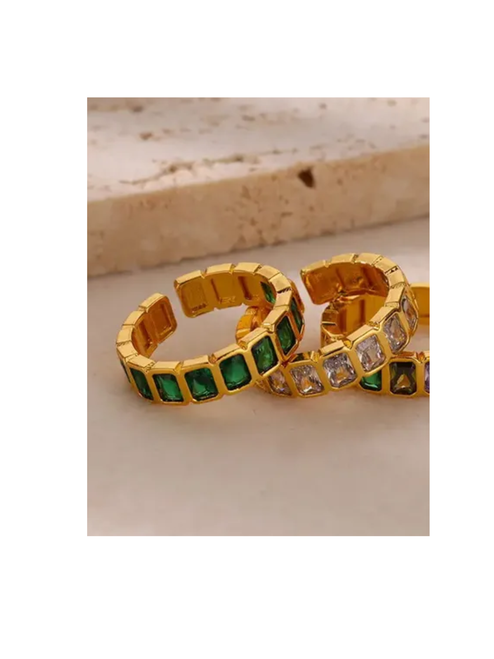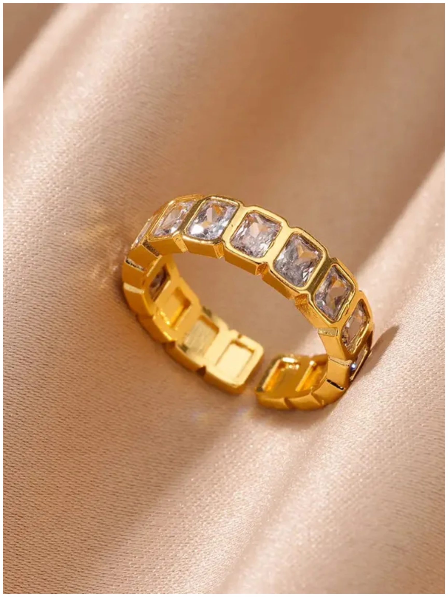 Sortija ajustable en acero inoxidable 304, delicada y hermosa, con brillantes simulados que rodean la pieza, aportando un toque de brillo sutil para cualquier ocasión.