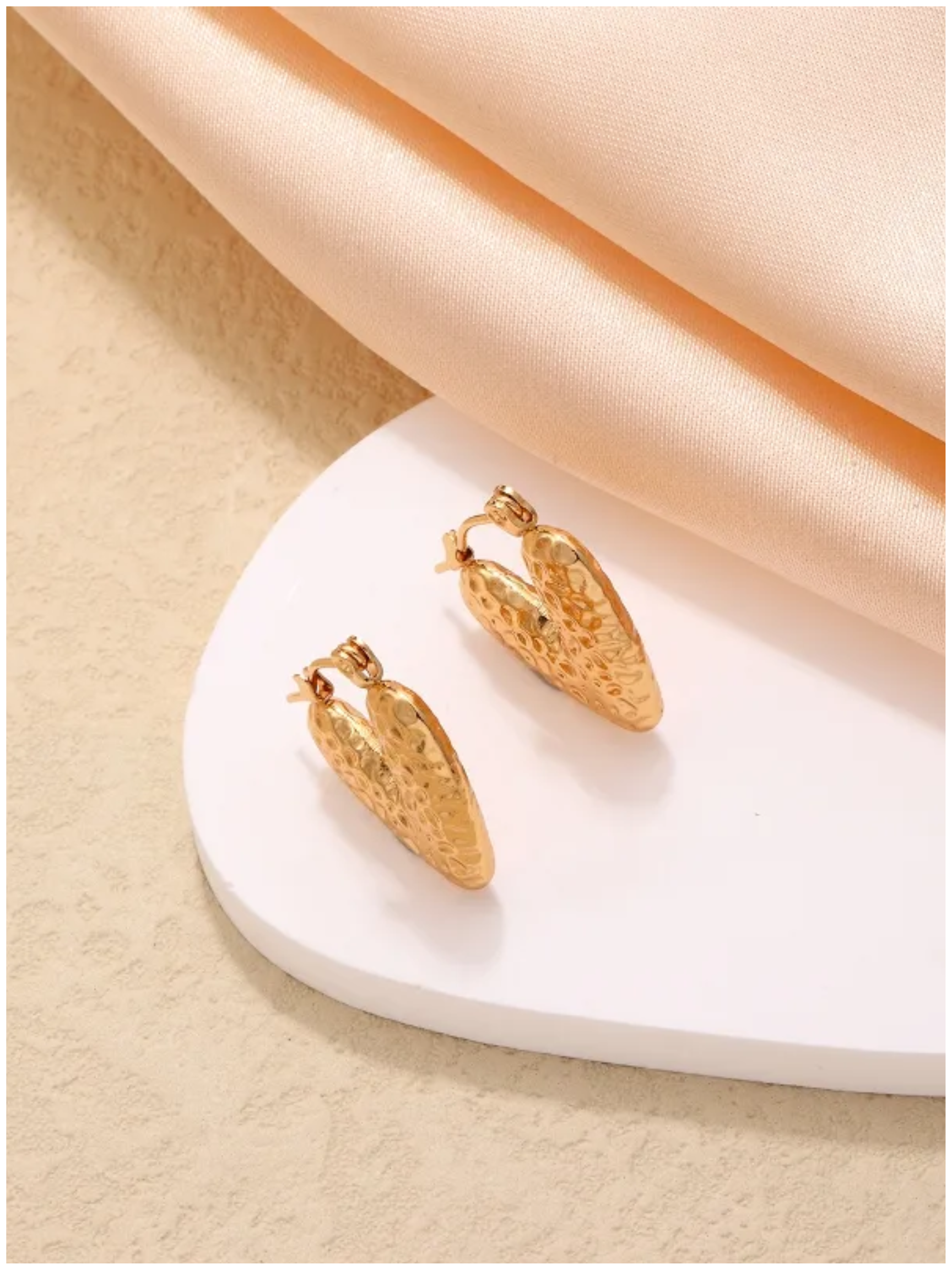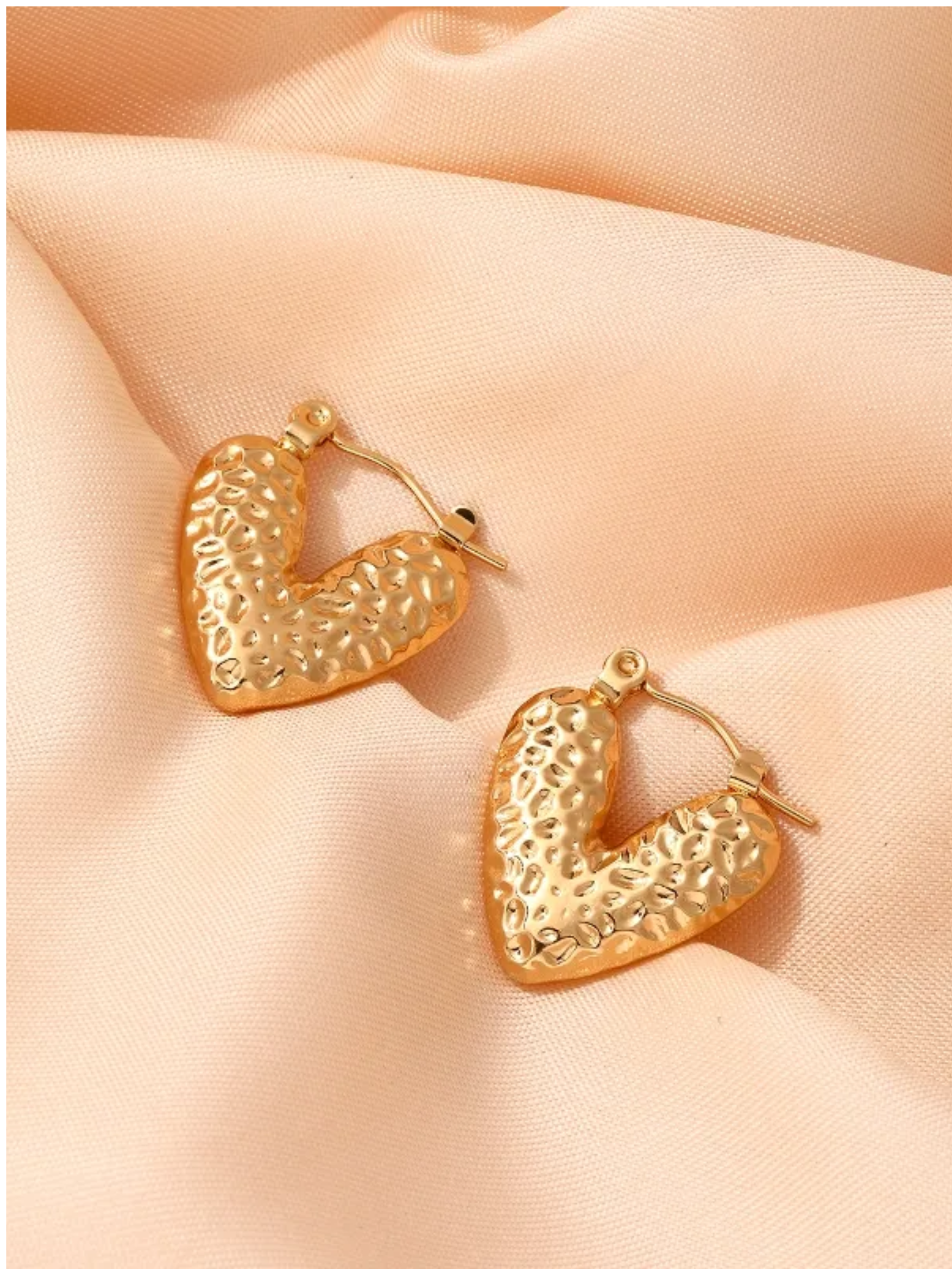 Pantallas colgantes en acero inoxidable con baño en oro de 18K y diseño de corazón. Un toque delicado y femenino que acompaña tu estilo con dulzura en cualquier momento del día.