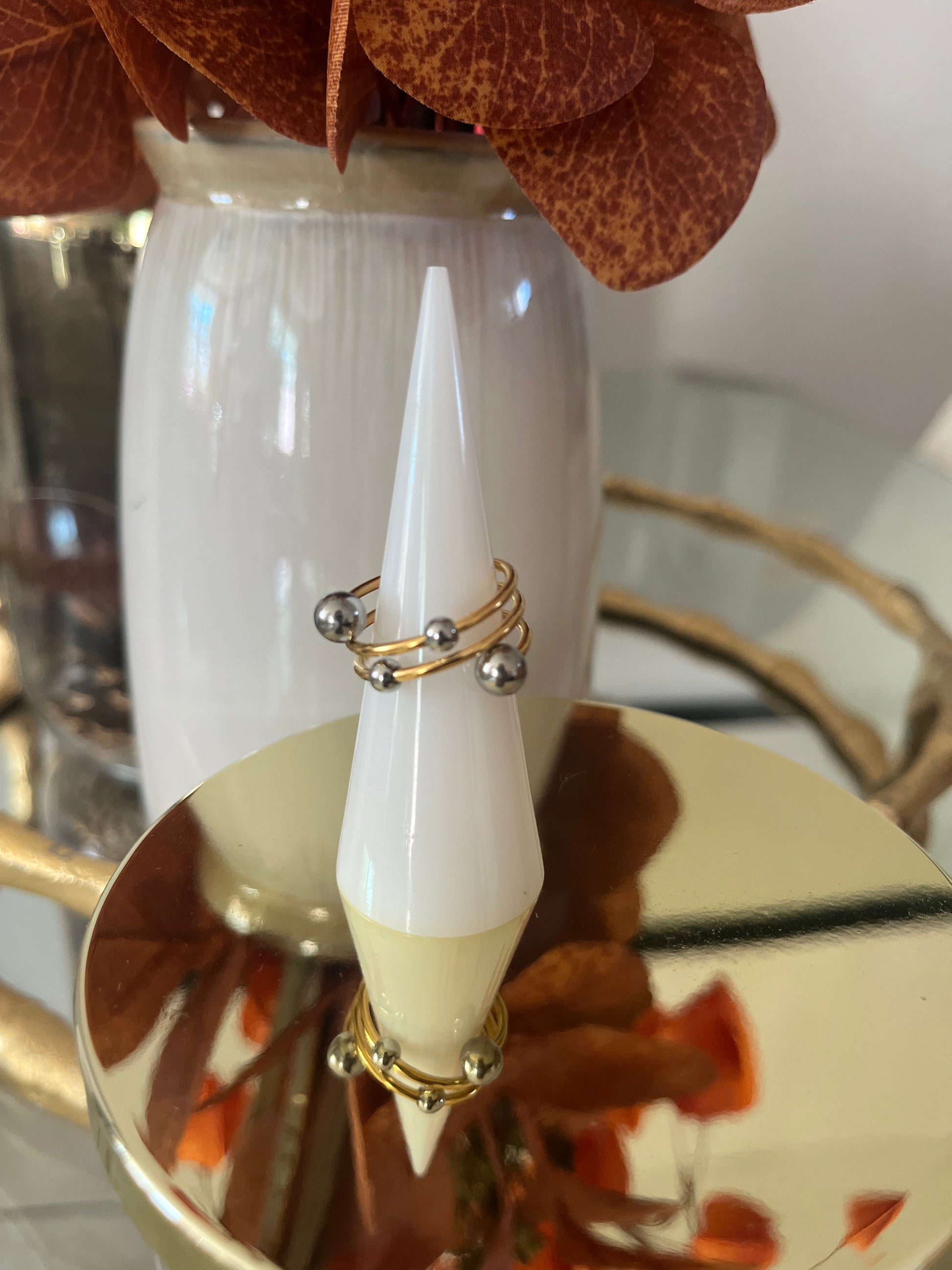 Sortija en forma de espiral, dos tonos en acero inoxidable. Combínala y llévala de lunes a domingo, querrás usarla siempre!